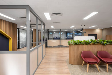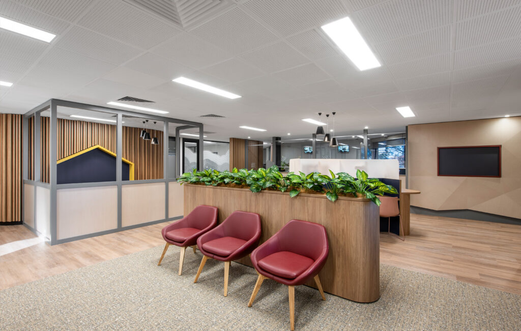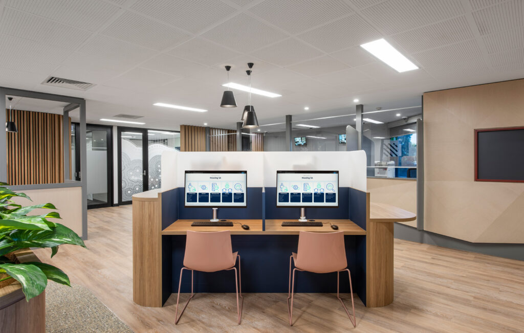 The Marion office of the SA Housing Authority urgently needed an upgrade. The old reception area was drab and underwhelming, making it unwelcoming for clients, challenging for staff to interact with them, and providing little privacy. To improve customer service facilities, Greenway provided a new external entry, which allowed for the relocation of the reception counter. This reorientation opened the public waiting space, improving the visual connection between staff and customers and providing a safe, friendly, and engaging environment.
